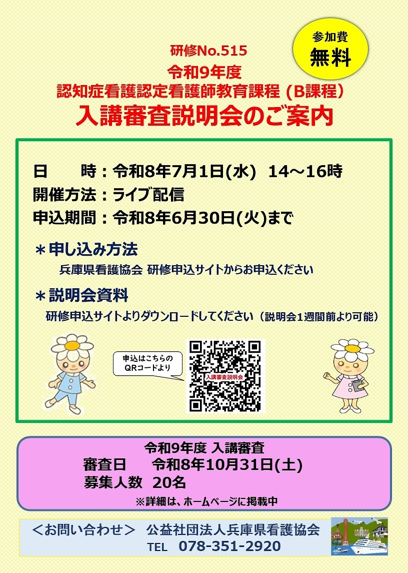 R9年度 認知症看護認定看護師教育課程(B課程)に関する募集要項及び入講審査出願申請書類一式を掲載しました
