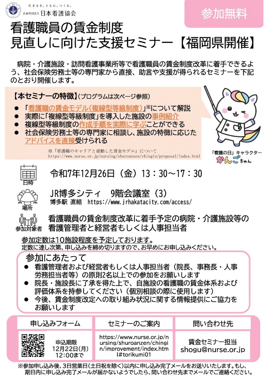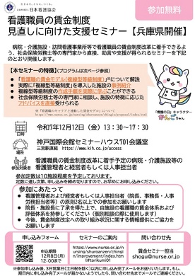 【他団体】〈日本看護協会〉「看護職員の賃金制度見直しに向けた支援セミナー」(兵庫県・福岡県開催) のご案内