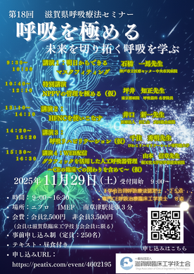 【他団体】〈滋賀県臨床工学技士会〉「第18回滋賀県呼吸療法セミナー」開催のご案内