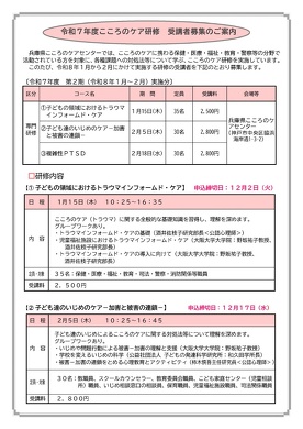 表題について、兵庫県こころのケアセンターから下記の通りご案内がありましたのでお知らせします。