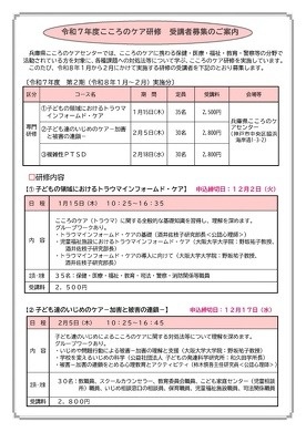 【他団体】〈兵庫県こころのケアセンター〉令和7年度こころのケア研修第2期(令和8年1月~2月実施分)受講者募集のご案内