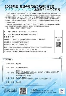 【他団体】〈日本看護協会〉「2025年度 看護の専門性の発揮に資するタスク・シフト/シェア全国セミナー」開催のご案内
