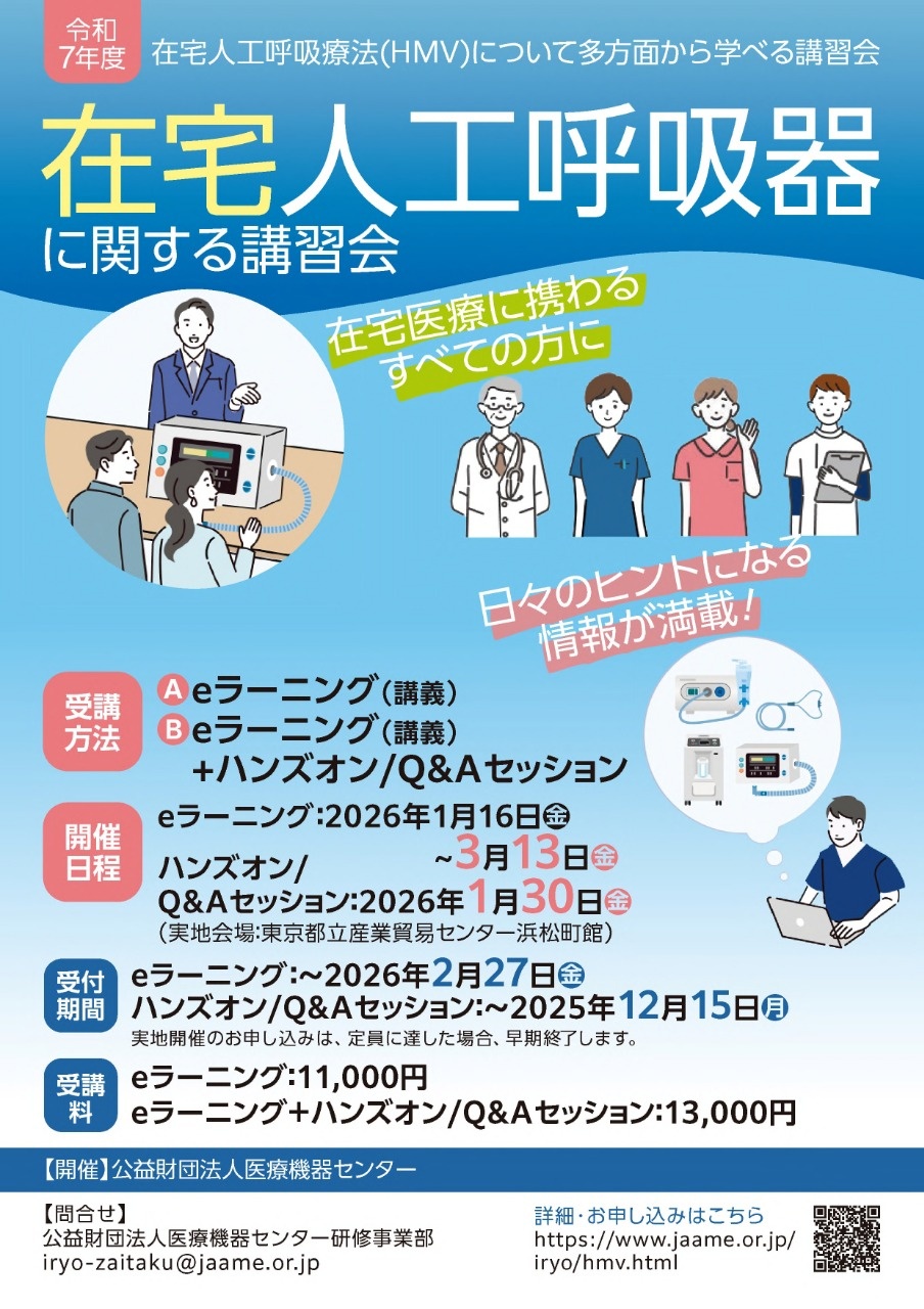 【他団体】〈医療機器センター〉令和7年度「在宅人工呼吸器に関する講習会」開催のご案内