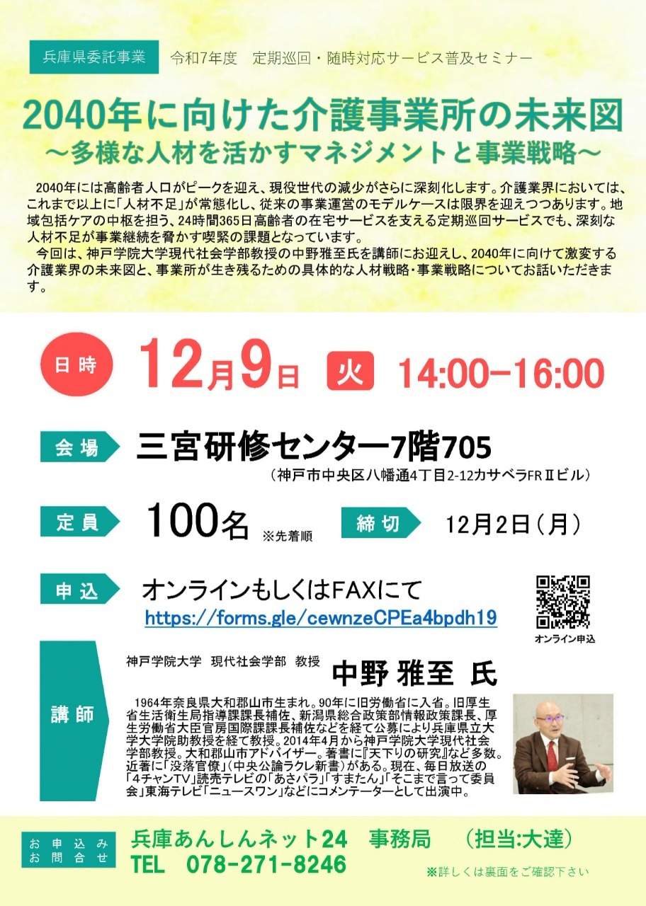 【他団体】〈兵庫あんしんネット24〉「令和7年度定期巡回・随時対応サービス普及セミナー」開催のご案内
