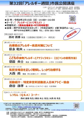 【他団体】〈日本アレルギー協会関西支部 他〉第32回「アレルギー週間」市民公開講座 開催のご案内
