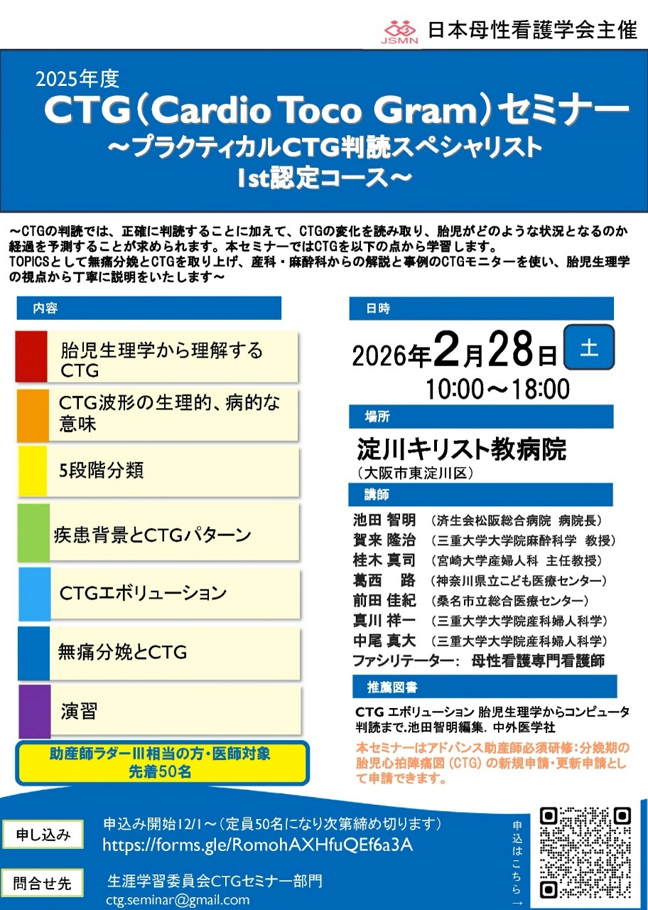 【他団体】〈日本母性看護学会〉CTG(Cardio Toco Gram)セミナー開催のご案内