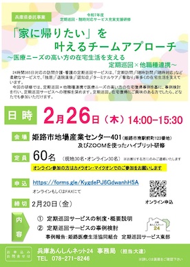 【他団体】〈兵庫あんしんネット24〉兵庫県委託事業「令和7年度定期巡回・随時対応サービス充実支援研修」開催のご案内