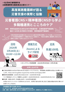 【他団体】〈日本災害看護学会〉「災害看護教育活動委員会企画セミナー」開催のご案内