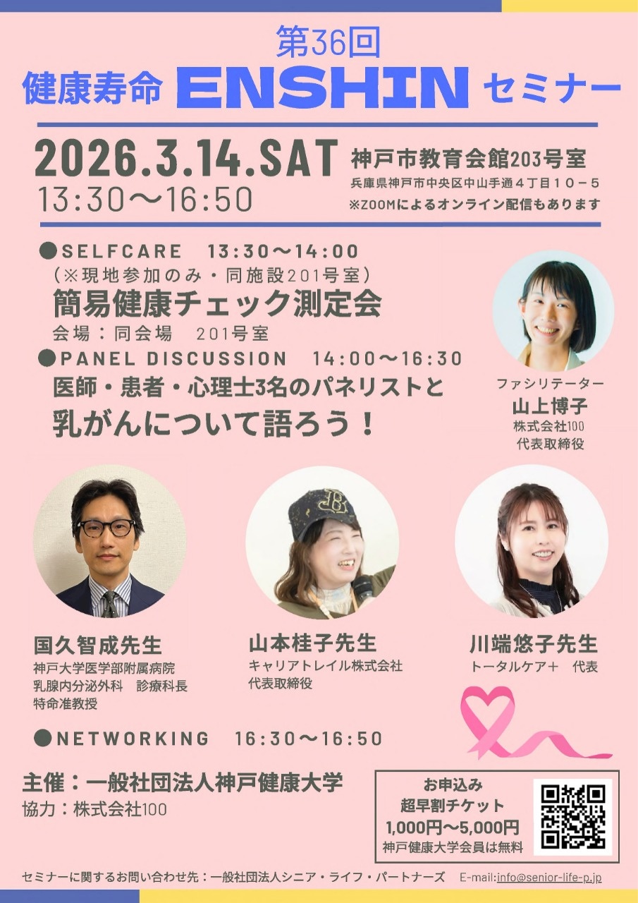 【他団体】〈神戸健康大学〉「第36回健康寿命ENSHINセミナー」開催のご案内
