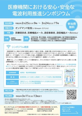 【他団体】〈総務省、電波環境協議会〉「医療機関における安心・安全な電波利用推進シンポジウム」開催のご案内