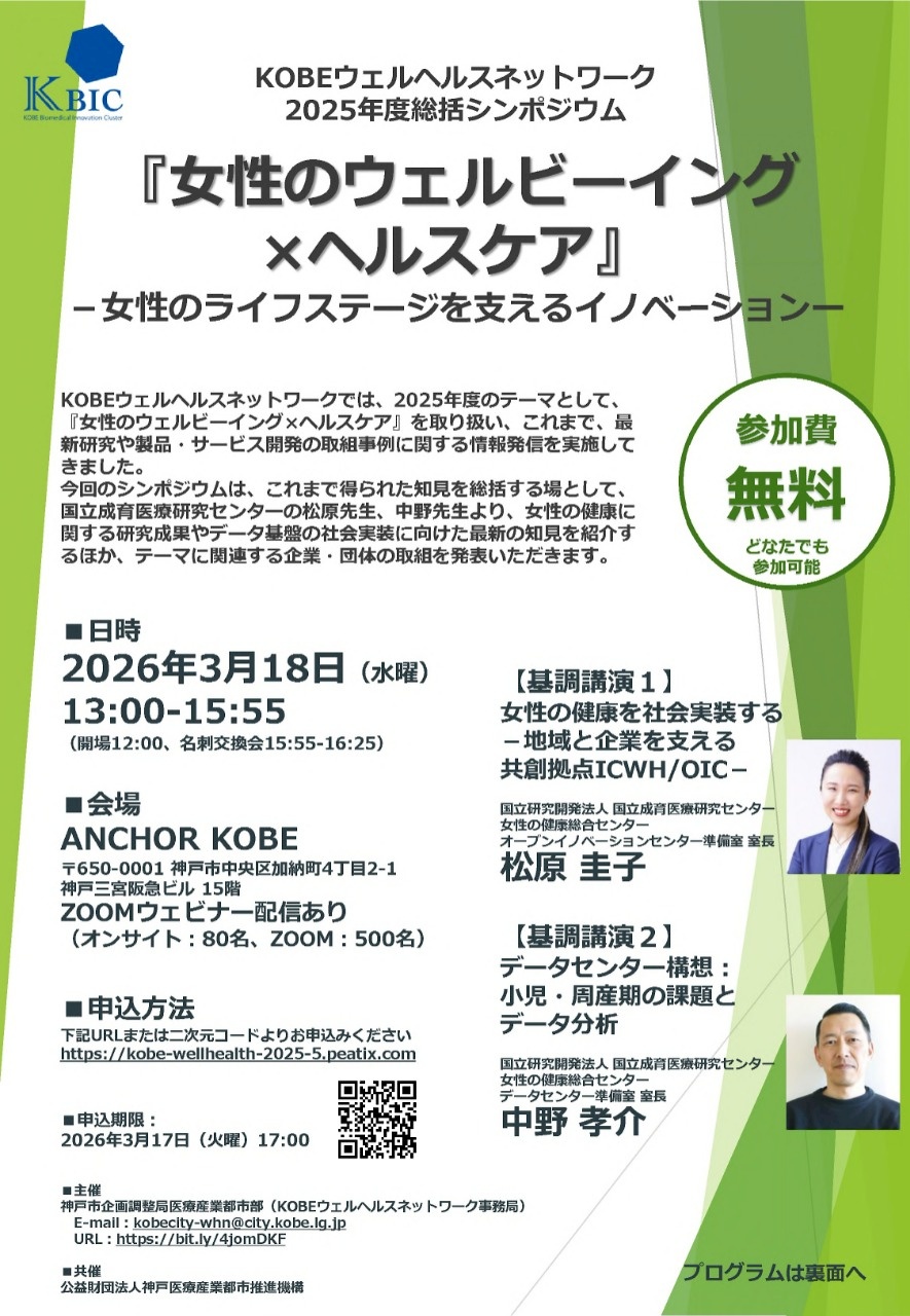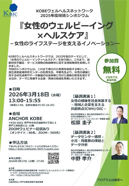 【他団体】〈神戸市〉「KOBEウェルヘルスネットワーク 2025年度総括シンポジウム」開催のご案内