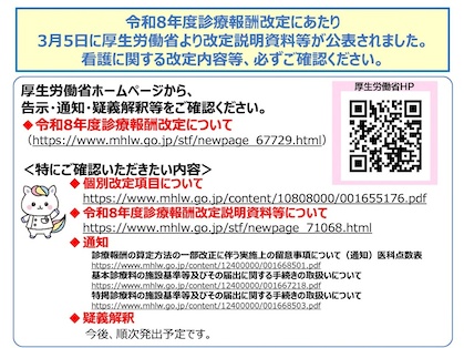 令和8年度診療報酬改定にあたり、厚生労働省より改定説明資料等が公表されました。