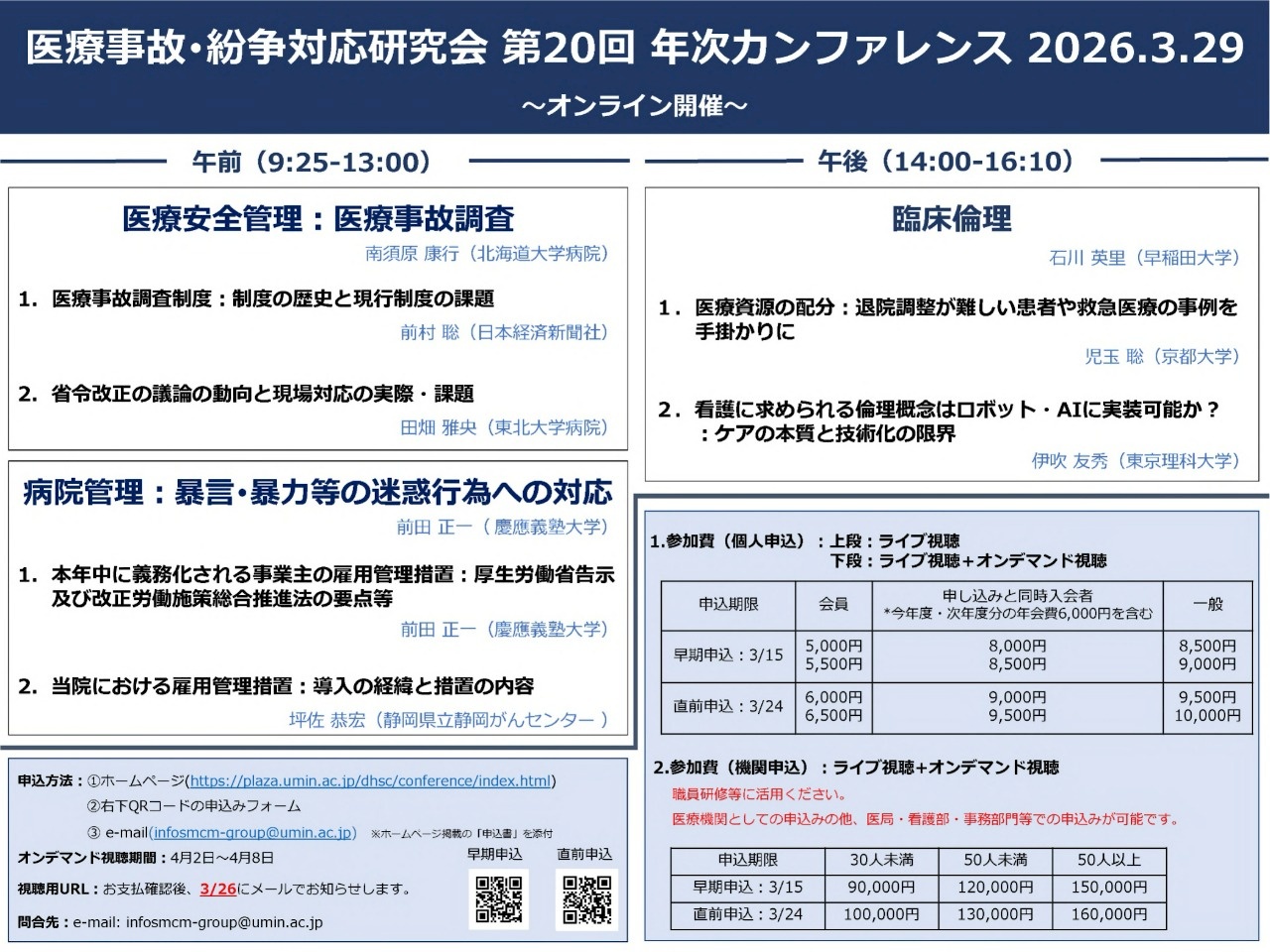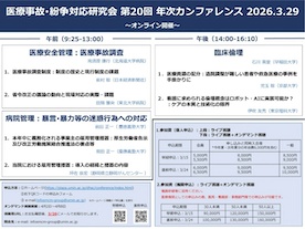 【他団体】〈医療事故・紛争対応研究会〉「第20回年次カンファレンス2026.3.29~オンライン開催~」のご案内