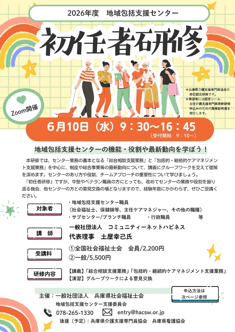 【他団体】〈兵庫県社会福祉士会〉「2026年度地域包括支援センター初任者研修」開催のご案内