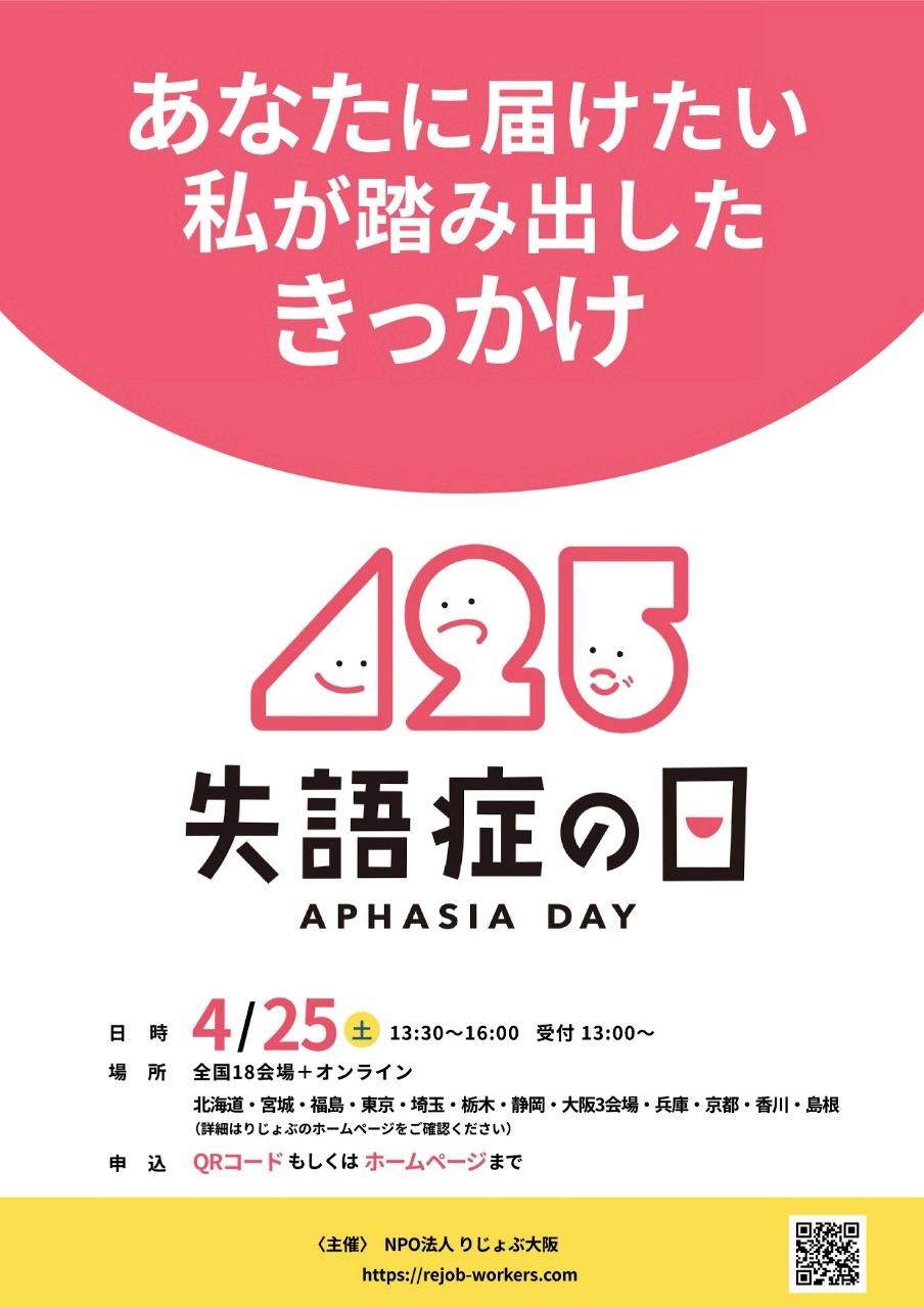 【他団体】〈NPO法人りじょぶ大阪〉「失語症の日」開催及びアンケート実施のご案内