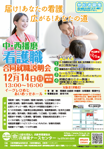 共催:西播磨民間病院協会、兵庫県、中播磨健康福祉事務所、龍野健康福祉事務所、姫路市、労働局、ハローワーク姫路
